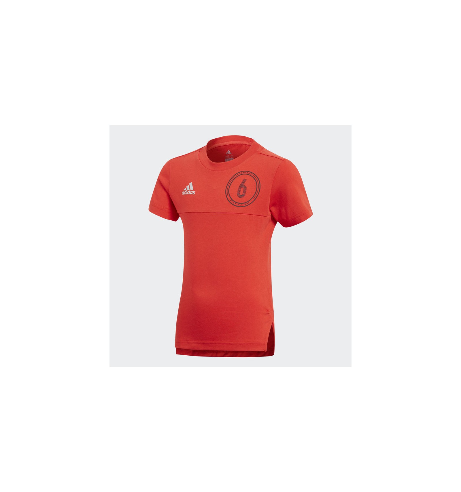 - "adidas 6 play all day" serigrafiado en tinta de alta densidad a la izquierda del pecho; "6" serigrafiado en tinta de alta densidad en la espalda