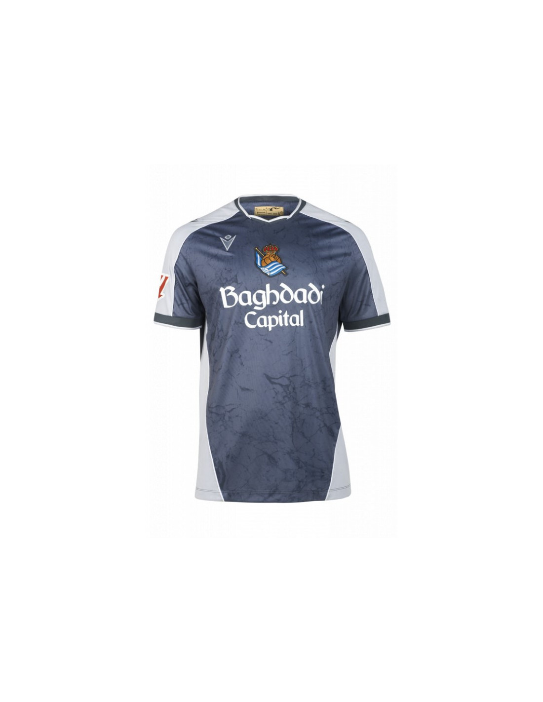 El patrón marmóreo no es solo una elección estética: representa la piedra angular sobre la que se construye el futuro del equipo. Cada línea y veta del diseño evoca la fuerza y la autenticidad de los jugadores formados en casa, que dan forma al presente y al mañana del club txuri-urdin.