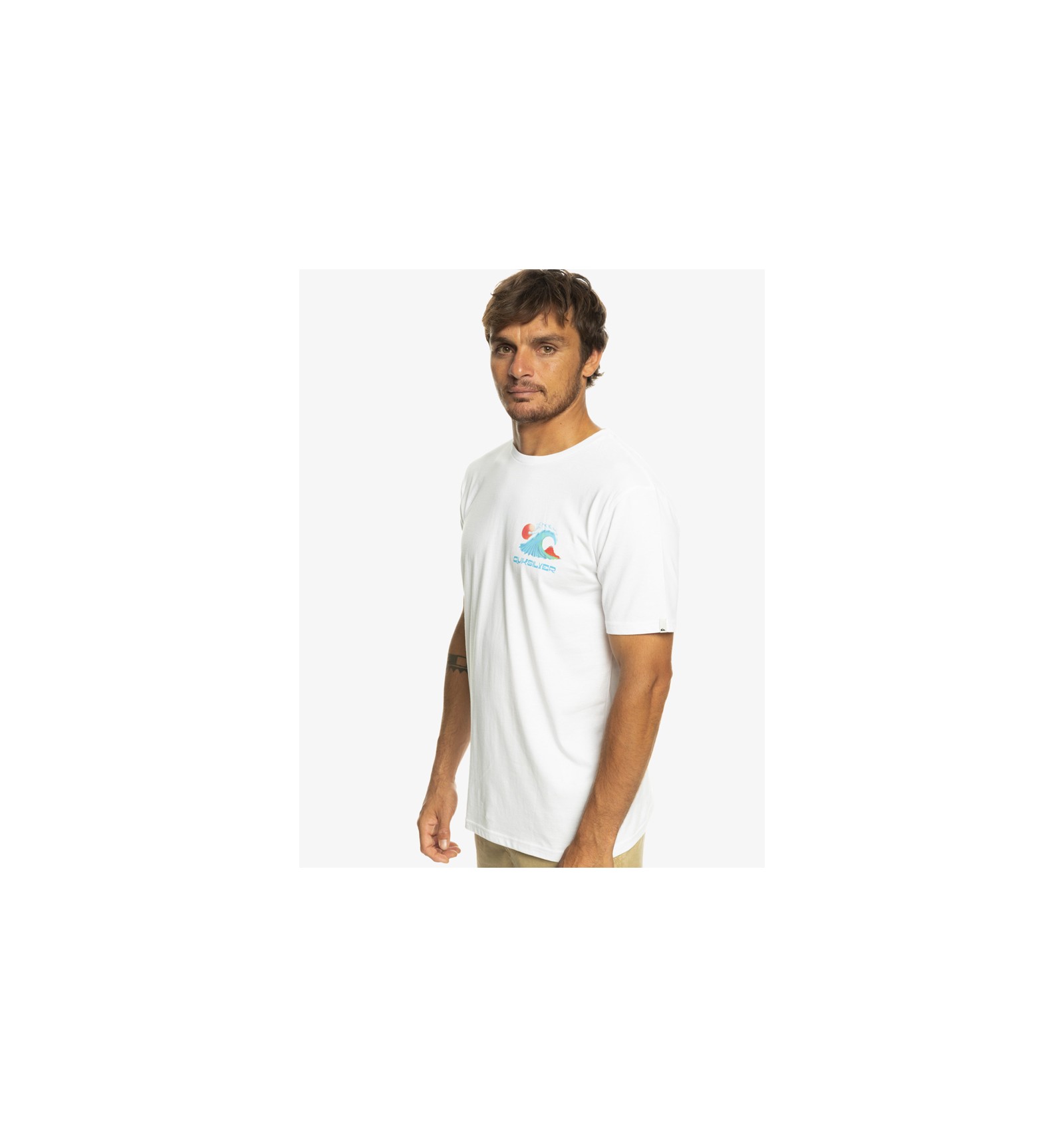 Camiseta de manga corta Quiksilver para hombre, con logo frontal y dibujo en la espalda.