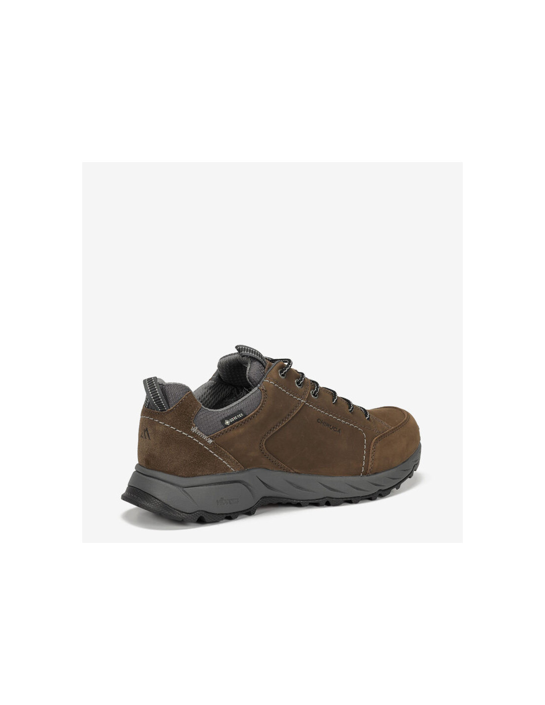 Una bota de alta gama de piel nobuck grabada, membrana Gore-Tex impermeable y transpirable; suela dos densidades con entresuela de phylon y patín Vibram® Omific con compuesto Megagrip® que proporciona amortiguación y adherencia.