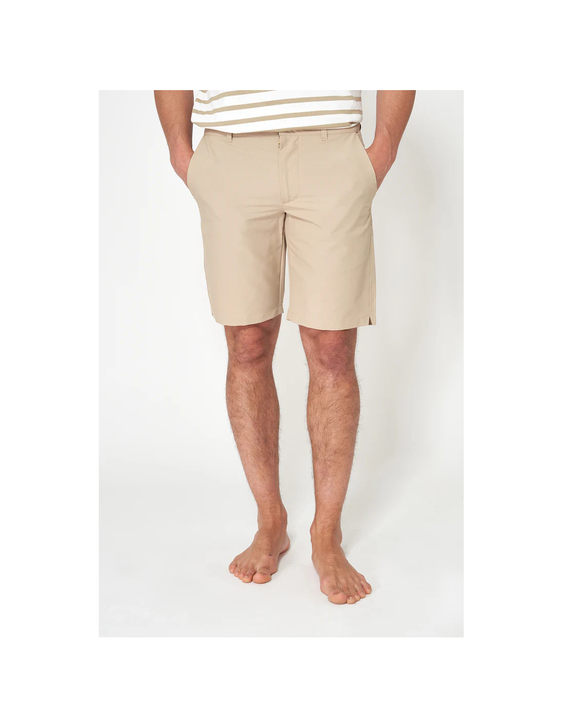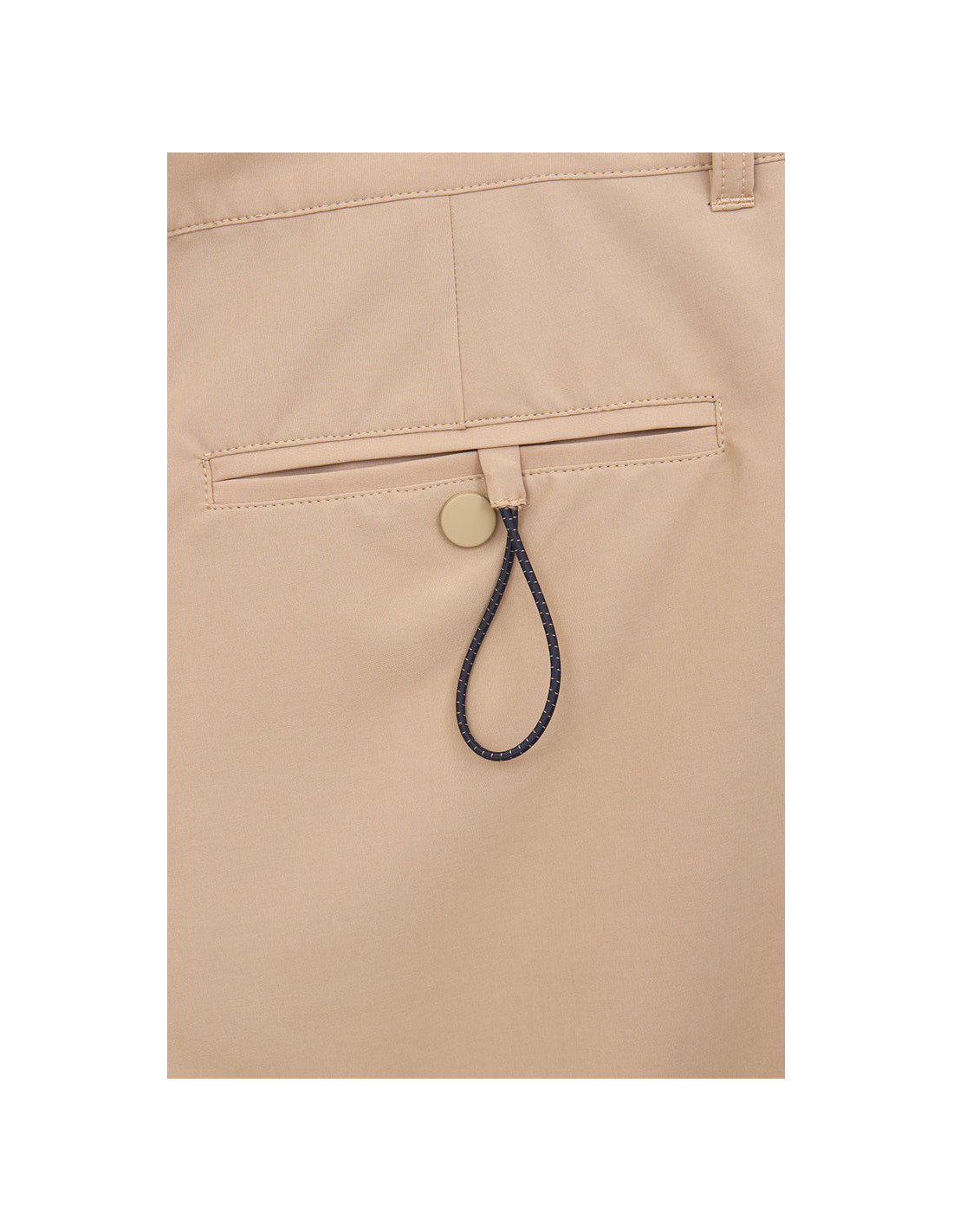 Su material favorece la transpirabilidad y mantiene una sensación fresca durante el uso. Lleva aberturas laterales y bolsillos de ranura en la parte trasera. El cierre es con botón tipo snap y cremallera. Además lleva trabillas para cinturón.
