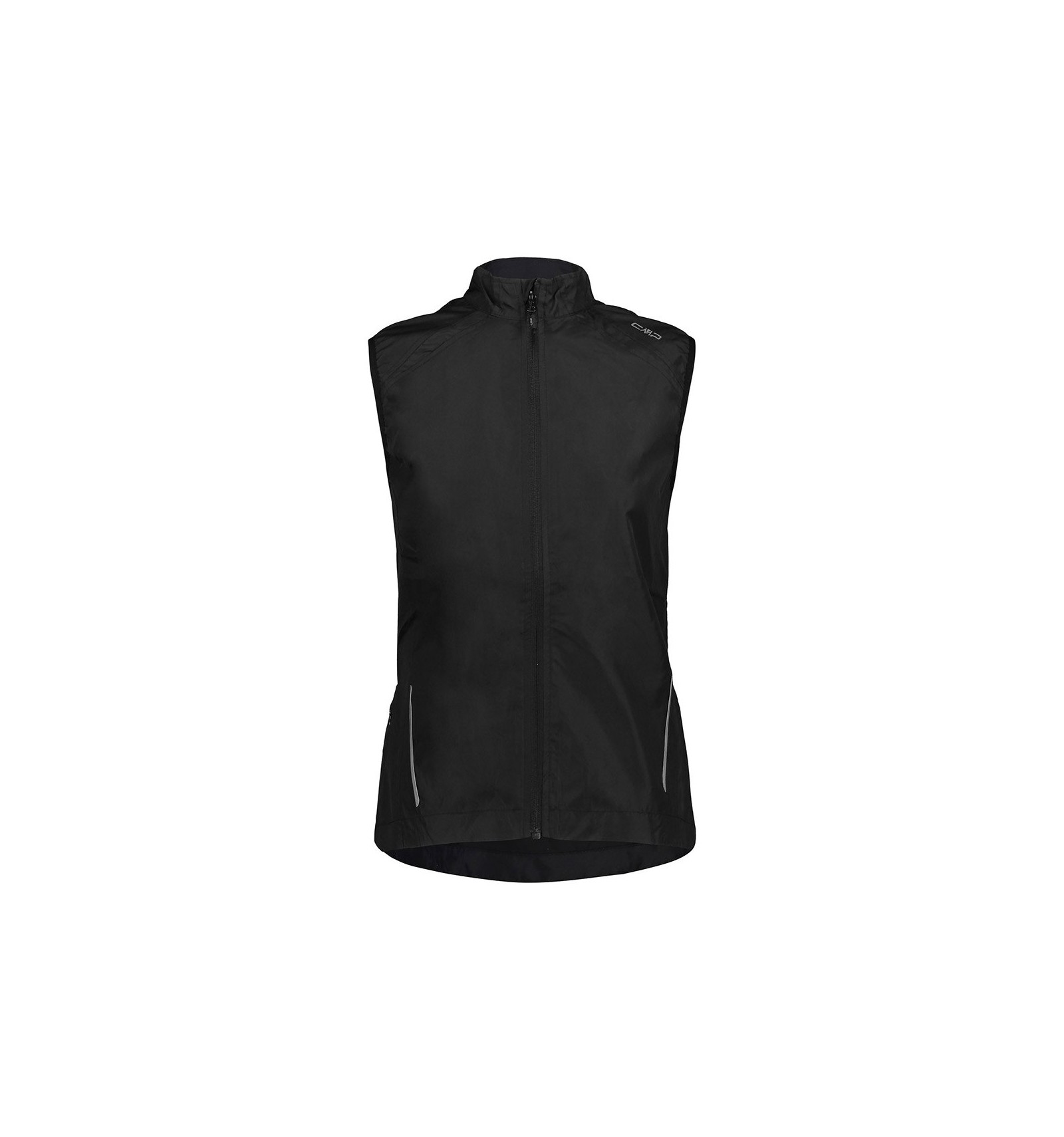 Chaleco a prueba de viento con detalles reflectantes, elástico en la parte inferior y alrededor de las mangas.
