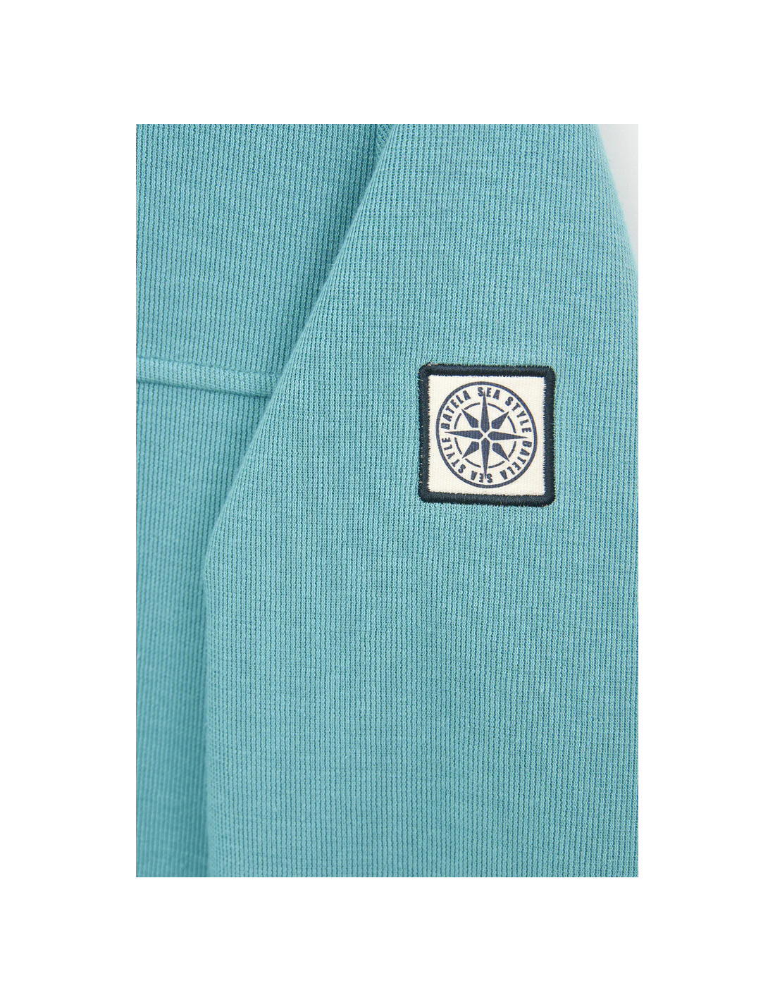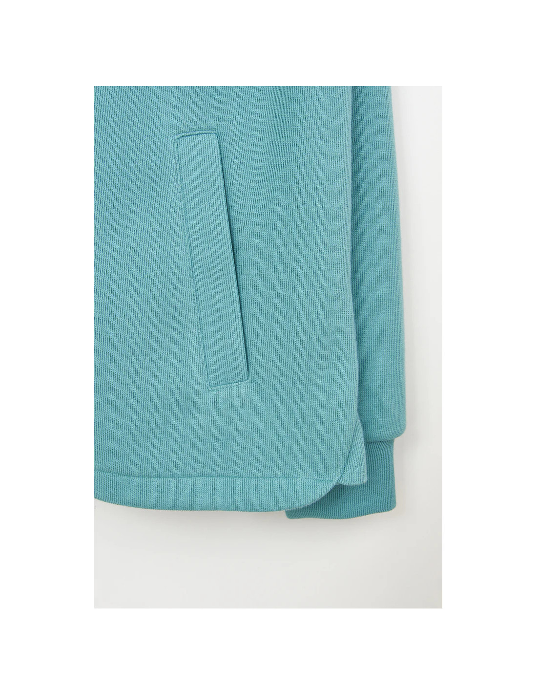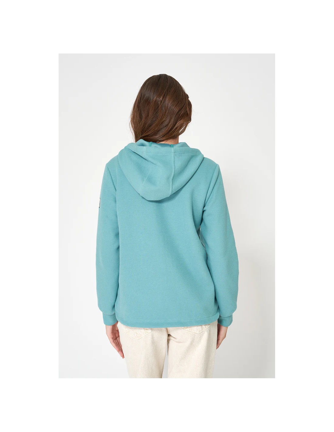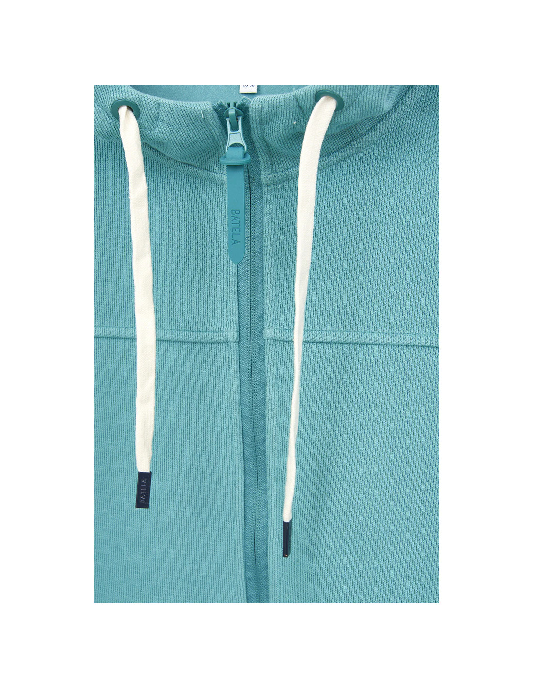 La cremallera frontal, los bolsillos y la capucha con cordones refuerzan su carácter práctico y desenfadado, haciendo de esta sudadera una opción versátil para entretiempo y para los días de verano en los que refresca.