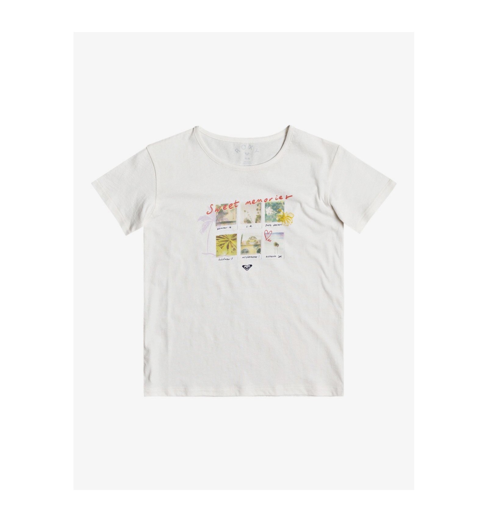 Camiseta manga corta Roxy, color blanco con dibujos.
