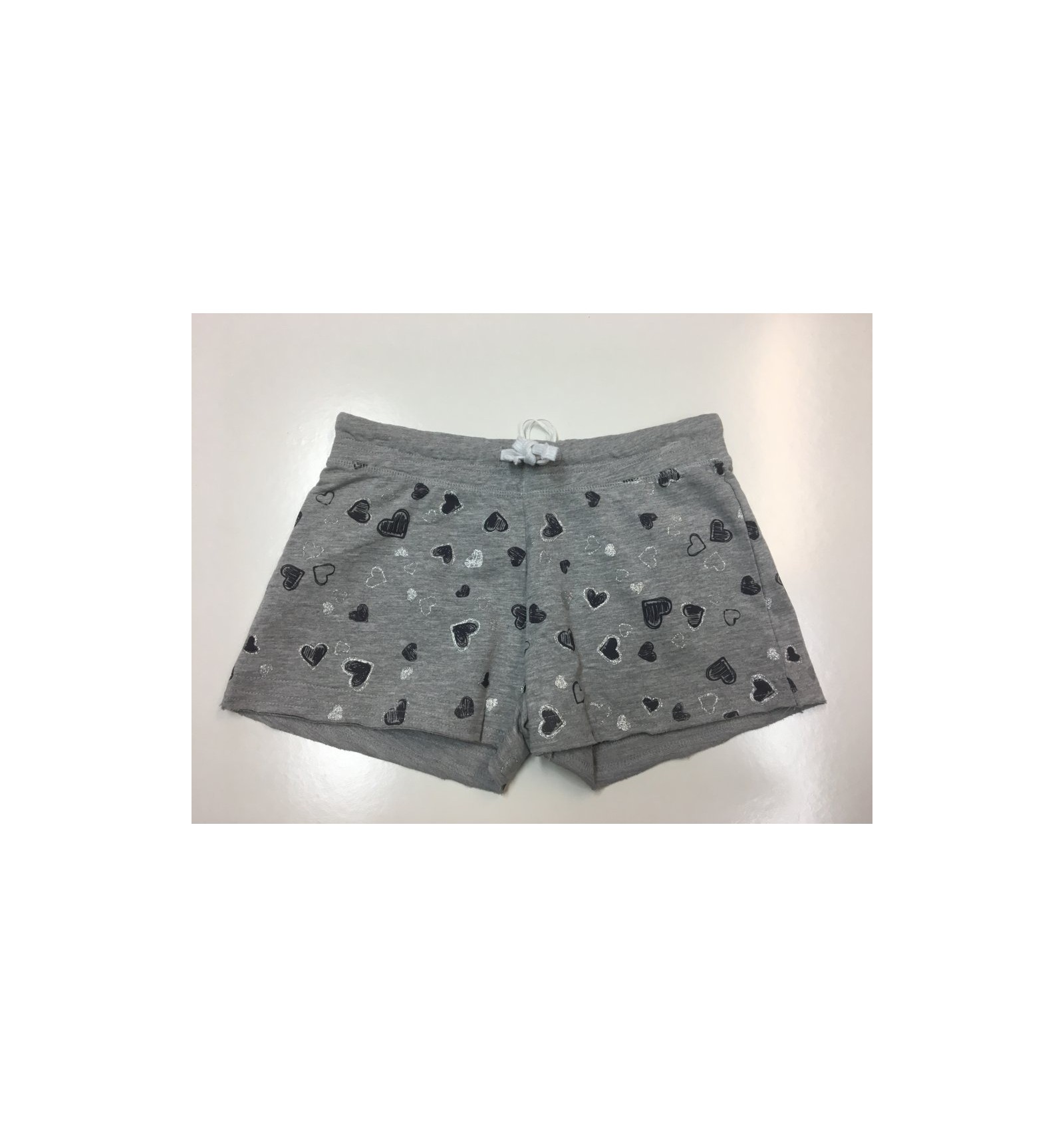 SHORT DE NIÑA EN ALGODON. COLOR VIGORE CON CORAZONES DE BRILLANTINA.